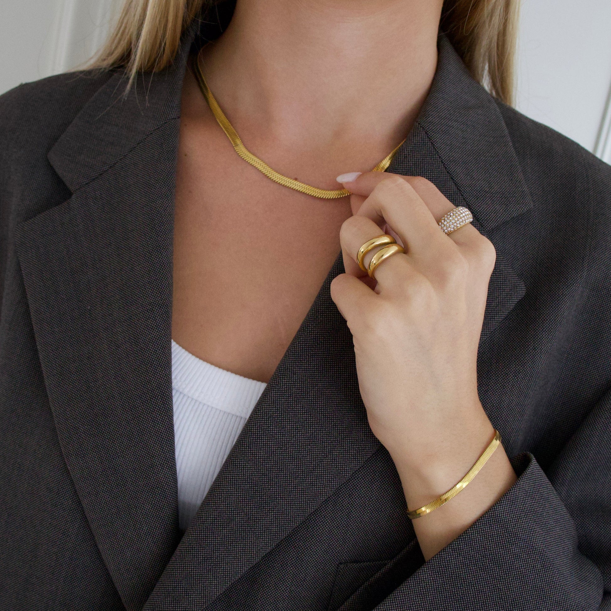 Schitter met BIDA sieraden – gemaakt van 100% roestvrij staal en afgewerkt met een luxe gouden coating. Ze zijn huidvriendelijk, verkleuren niet en blijven sprankelen, zelfs onder de douche, in het zwembad of tijdens een workout.