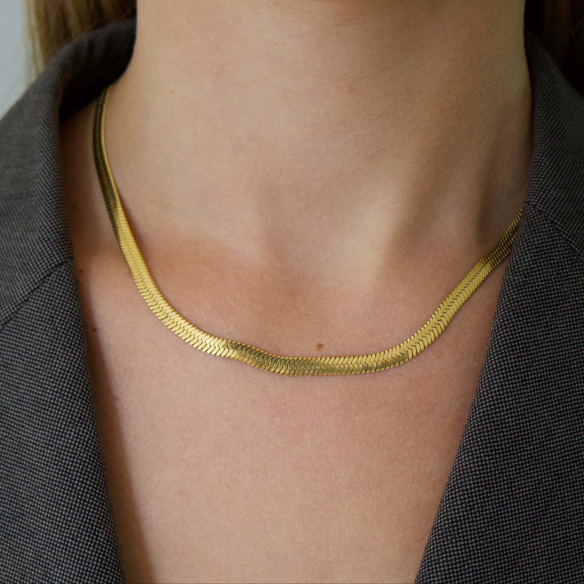 De BALÍ NECKLACE is dé must-have voor een chique en effortless look. Met haar gladde, platte design sluit deze ketting perfect aan op je hals en voegt ze een subtiele touch of elegance toe aan elke outfit. Draag haar solo voor een minimalistische vibe of layer haar met andere kettinkjes voor een speelse twist!